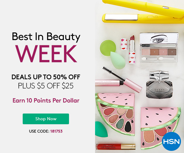 Earn 10 Points per dollar and get up to 50% Off Daily Beauty Deals + $5 off $25 with code 181753 @HSN.