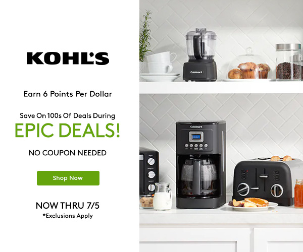 Save on 100s of items during @Kohls Epic Deals (no coupons needed) and earn 6 Points per dollar.
